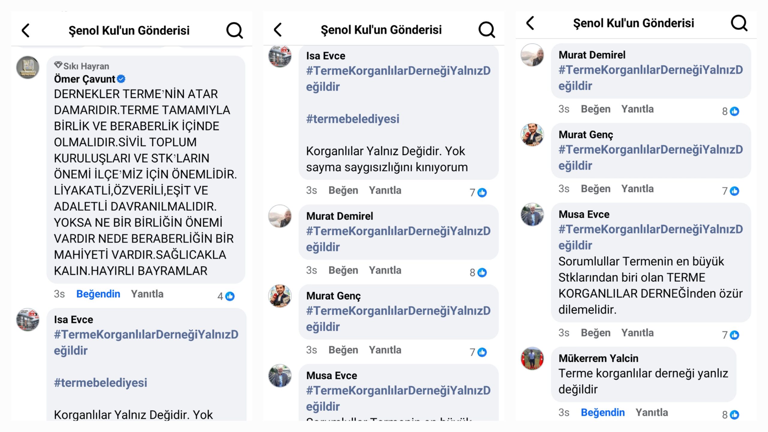 Terme Korganlılar Derneği’nin sosyal medya üzerinden yaptığı paylaşım sonrası, çok sayıda vatandaş ve dernek üyesi “ayrımcılık” iddiasıyla Terme Belediye Başkanı Şenol Kul’a tepki gösterdi.